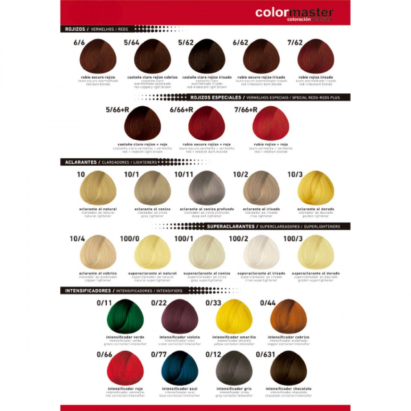 • Modo de Uso: Vierta el contenido del pomo de COLORACIÓN COLORMASTER en un bol no metálico. Agregue 90 ml. de REVELADOR EN CREMA COLORMASTER (20 o 30 vol., según el tono deseado). Mezcle con pincel hasta obtener una crema homogénea.
